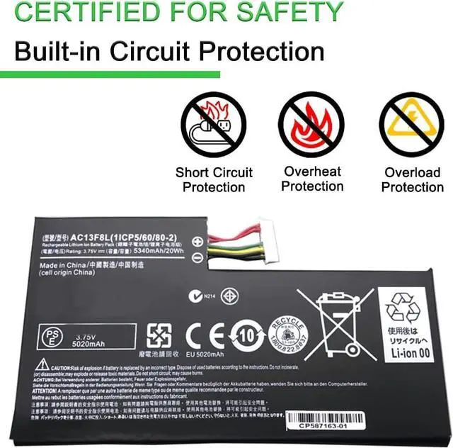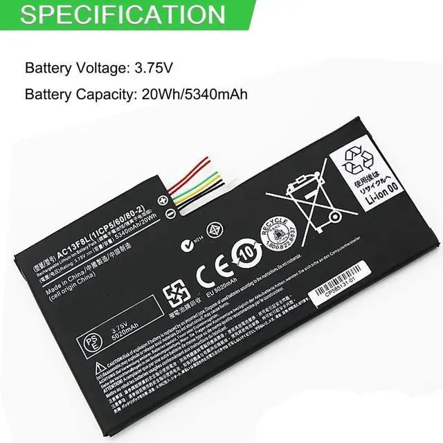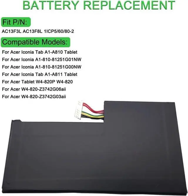 3.75V 20Wh 5340mAh AC13F3L AC13F8L Replacement Battery Compatible for Acer Iconia Tab A1-A810 A1-A811 Tablet W4-820P W4-820 1ICP5/60/80-2