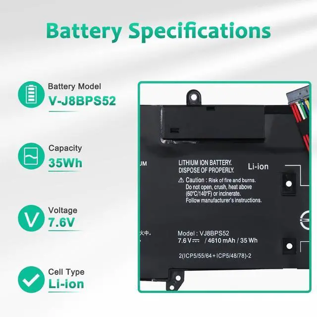 LONG-LASTING BATTERY LIFE:With 7.6V,capacity (35Wh/4610mAh),the( VJ8BPS52) battery ensures all-day power for your laptops in a factory-fresh, never-used battery pack designed for maximum performance.