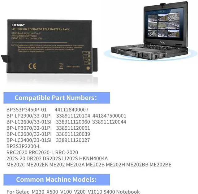 Compatible ModelsFor Getac M230 X500 V100 V200 V1010 S400 Notebook
