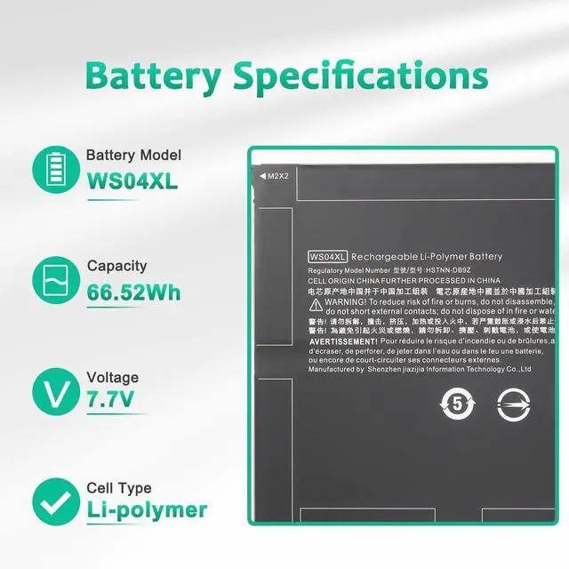 LONG-LASTING BATTERY LIFE- With 7.7V capacity ( 66.52Wh/8210mAh ), The ( WS04XL ) battery ensures all-day power for your laptops in a factory-fresh, Never-used battery pack designed for maximum performance.