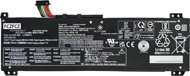 SpecificationsBattery Model: L21M4PC1// Voltage:15.44V // Capacity:60Wh 3887mAh 4-cell // Color:Black // Condition:Brand New.