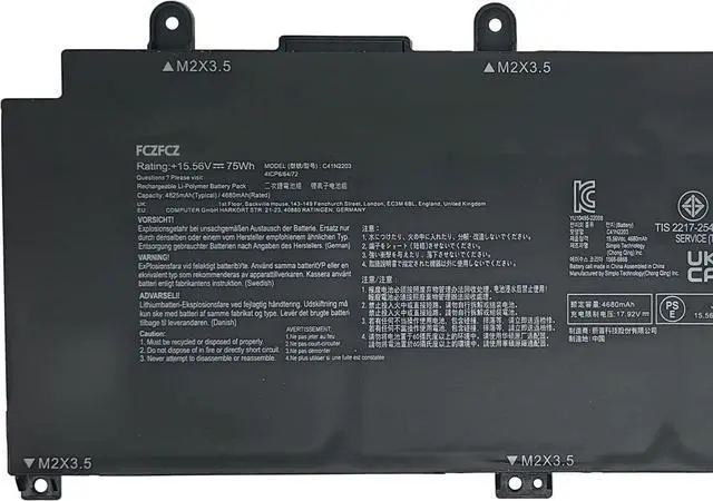 • SpecificationsBattery Model: C41N2203 // Voltage:15.56V // Capacity:79.5Wh 5100mAh // Color:Black // Condition:Brand New.