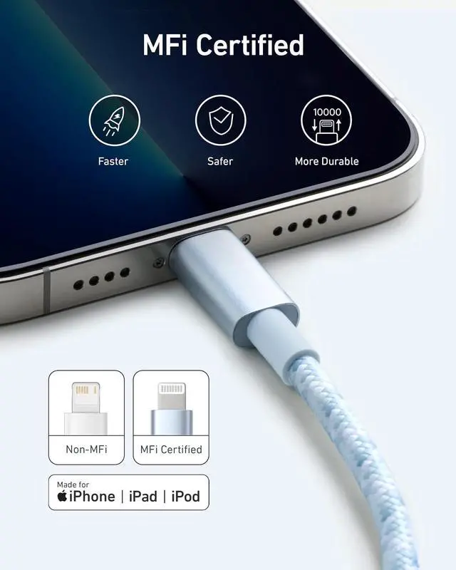 Certified Compatible: MFi Certified for flawless compatibility with virtually all Lightning devices, including iPhone 13, iPhone 13 Pro, iPhone 13 Pro Max, iPhone 13 mini, iPhone 12, and iPhone 11.