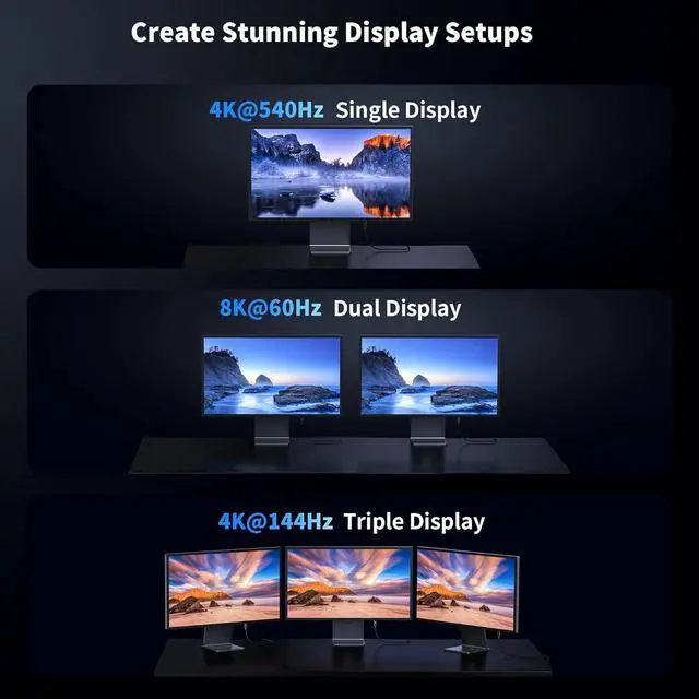 : Supporting dual 8K@60Hz or triple 4K@144Hz displays, this cable delivers unparalleled visual clarity and detail, making it ideal for graphic designers, video editors, and gamers. It can even support up to 4K@540Hz, minimizing screen tearing and lag for incredibly smooth gameplay; The Apple Thunderbolt Cable significantly improves connectivity speed and bandwidth, ensuring modern PC users can enjoy the highest-quality visuals and immersive experiences for years to come