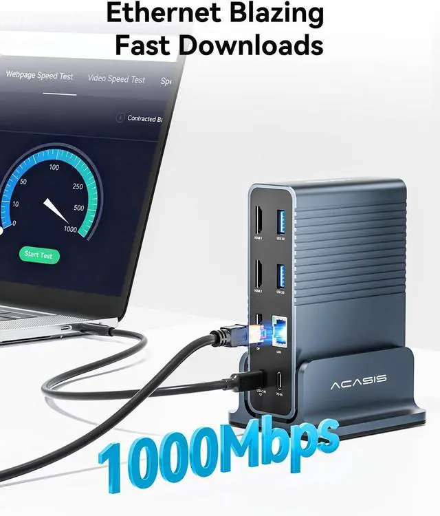 Maximizes desktop space savingsThis usb c docking station for laptop The vertical design significantly saves desktop space, freeing up horizontal areas. The upright structure promotes better airflow, reducing performance degradation caused by overheating. The vertical layout makes ports more clearly visible, enabling quick access without bending down or fumbling around.