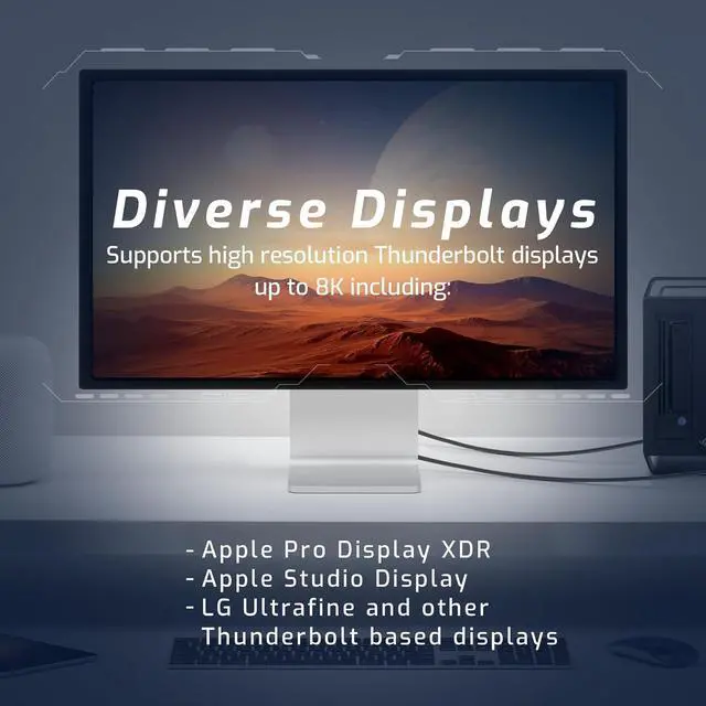 Diverse Displays: Supports high resolution displays up to 8K including DisplayPort over Thunderbolt, Apple Pro Display XDR, Apple Studio Display, LG Ultrafine, and any display plugged into a Thunderbolt dock or hub