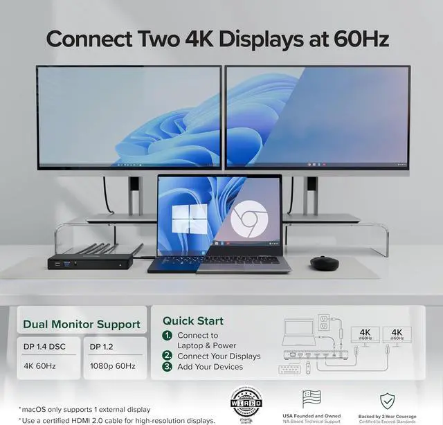 Compatibility: This dock is built for USB-C Windows 10+, USB4, and Chromebook systems. Not recommended for macOS due to lack of MST support and display limitations. Always verify host compatibility before purchase.