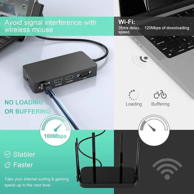 Surface Docking Station USB 3.0+USB C 3.0+SD/TF+3.5MM+100Mb/s RJ45 EthernetThis Surface pro docking station comes with 2 usb 3.0(5Gbps)& 2usb c (5Gbps) ports, allows your conveniently connect keyboard,mouse,usb flash driver, usb c hard disks, and browse photos via SD/TF slots with fast speed up to 104MB/S. Also this Surface dock support 10/100 Mb/s Lan networks and Audio&Mic function, allows you to enjoy the wonderful listening enjoyment and the ultra-fast ethernet speeds.