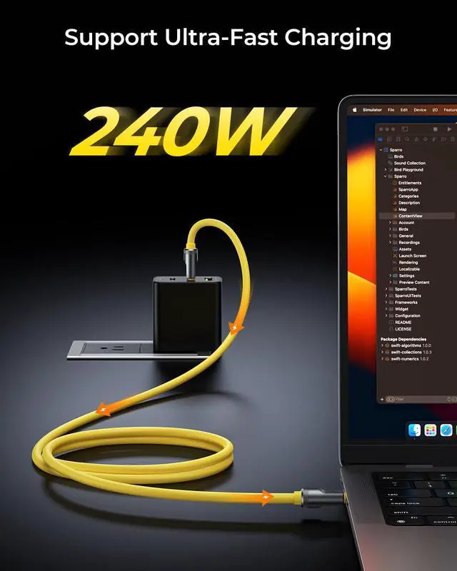 240W Rapid Charging Type C Cable Supports ultra-fast charging for laptops, tablets, and devices, delivering full power in minutes and reducing downtime