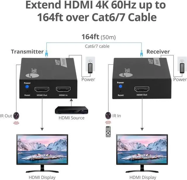 EXTENDED RANGE: Extends HDMI signals up to 164 ft (50 meters) via Cat6/7 networking cable, making it ideal for home theater, conference room, or other audio/video applications that require remote location setup.