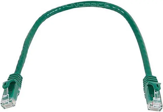Monoprice Flexboot Cat6 Ethernet Patch Cable - Network Internet Cord - RJ45, Stranded, 550Mhz, UTP, Pure Bare Copper Wire, 24AWG, 1ft, Green