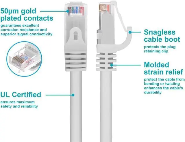 Monoprice Flexboot Cat6 Ethernet Patch Cable - Network Internet Cord - RJ45, Stranded, 550Mhz, UTP, Pure Bare Copper Wire, 24AWG, 2ft, White