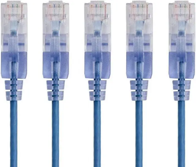Monoprice Cat6A Ethernet Network Patch Cable - 30 Feet - Blue | 5-Pack, 10G - SlimRun Series (133215)