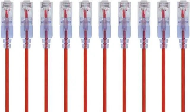 Monoprice 10-Pack SlimRun Cat6A Ethernet Network Patch Cable 10G 6-inch Red