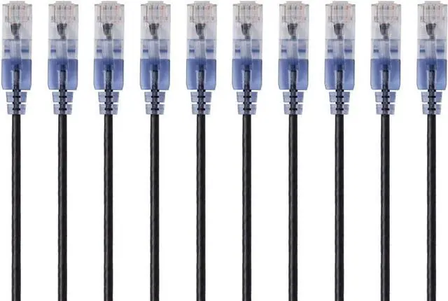 Monoprice SlimRun Cat6A Ethernet Patch Cable - Network Internet Cord - RJ45, Stranded, 550Mhz, UTP, Pure Bare Copper Wire, 10G, 30AWG , 14ft, Black, 10-Pack