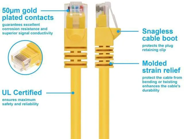 Monoprice Cat6 Ethernet Patch Cable - Network Internet Cord - RJ45, Stranded, 550Mhz, UTP, Pure Bare Copper Wire, 24AWG, 10ft, Yellow