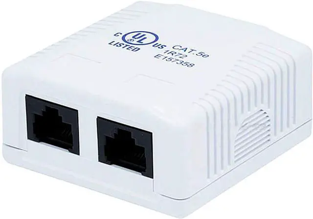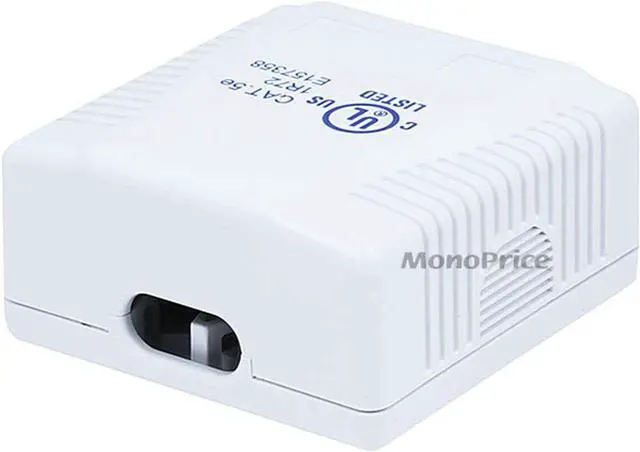 Surface mount CAT 5e box for when in-wall box and wire installation are not possible A clean and simple solution for network expansion Box is durable plastic and white in color Package Dimensions: 3.048 L x 7.62 H x 7.366 W (centimeters)