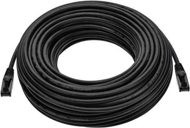 Monoprice Cat6A Flexible TPE Patch Cable - 100 Feet - Black | UTP, 24AWG, 500MHz, Pure Bare Copper, Snagless RJ45, Ethernet Cable - Flex Series