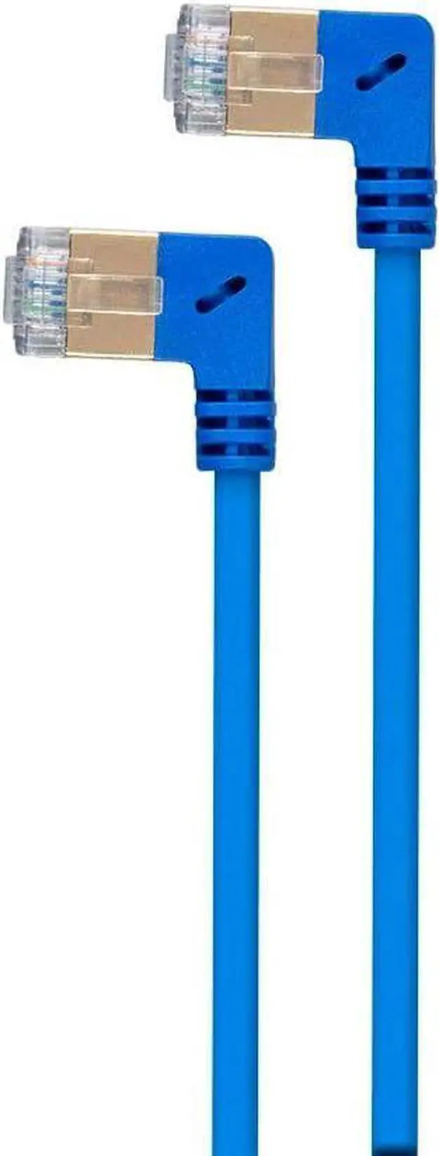 Monoprice SlimRun Cat6A Ethernet Network Cable/Cord - Blue - 2ft | 90 Degree Angled, 36AWG, S/STP
