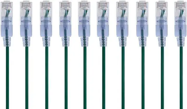 Monoprice 10-Pack SlimRun Cat6A Ethernet Network Patch Cable 10G 6-inch Green