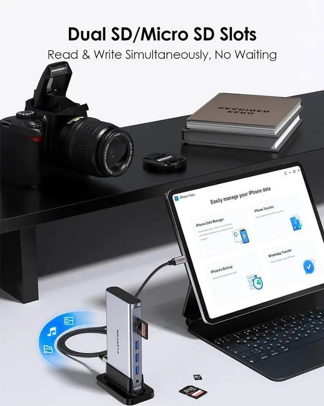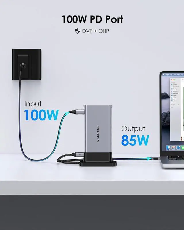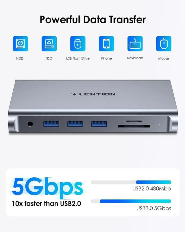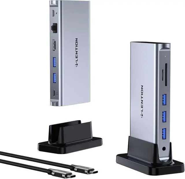 Ingenious Detachable Design - Made from aluminum with a Mac-style finish, the dock includes a removable base for vertical or horizontal orientation for home, office, and travel use. It has a 3.3ft cable that allows you to move freely. LENTION USB C docking station can expand your workstation and the vertical orientation is designed to save space and make the desktop clean and tidy