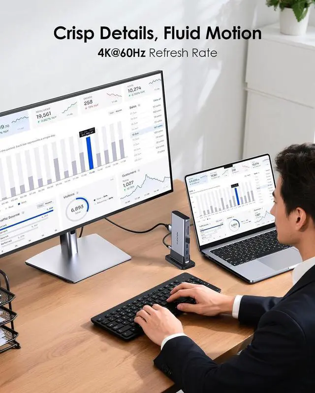 4K 60Hz Visual Feast - Mirror or extend the host laptop to TV, monitor, projection, and more with the higher screen refresh rates(3840 x 2160@60Hz)HDMI port. You can enjoy a UHD visual experience without motion blur and noise. Note: 4K@60Hz is only available for devices with DP1.4 and external display support HDCP2.2 and HDCP1.4