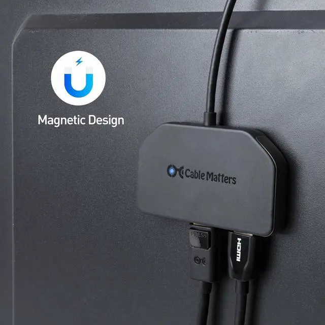 Convenient Mounting Option: Equipped with a built-in magnet, this display port hub for multiple monitors can be securely attached to any metal computer case, ensuring a tidy and optimized workspace. The flexible 12-inch cable tail reduces strain on the computers Mini DisplayPort.