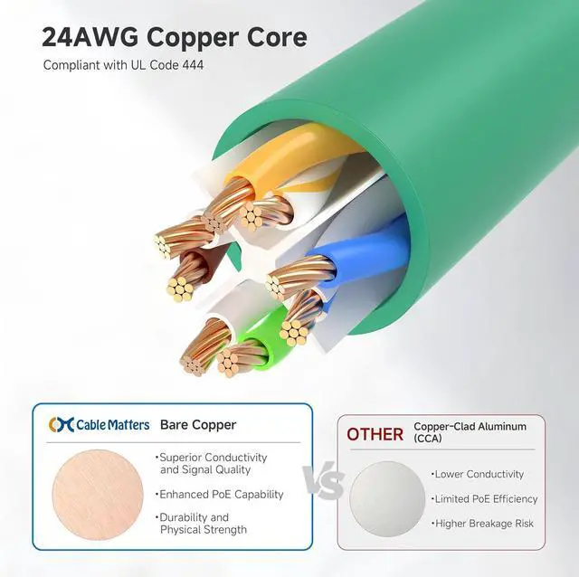 Durable and Secure Design: The connectors of this ethernet cable feature gold-plated contacts and strain-relief boots for enhanced durability. Bare copper conductors not only improve cable performance but also comply with communication cable specifications