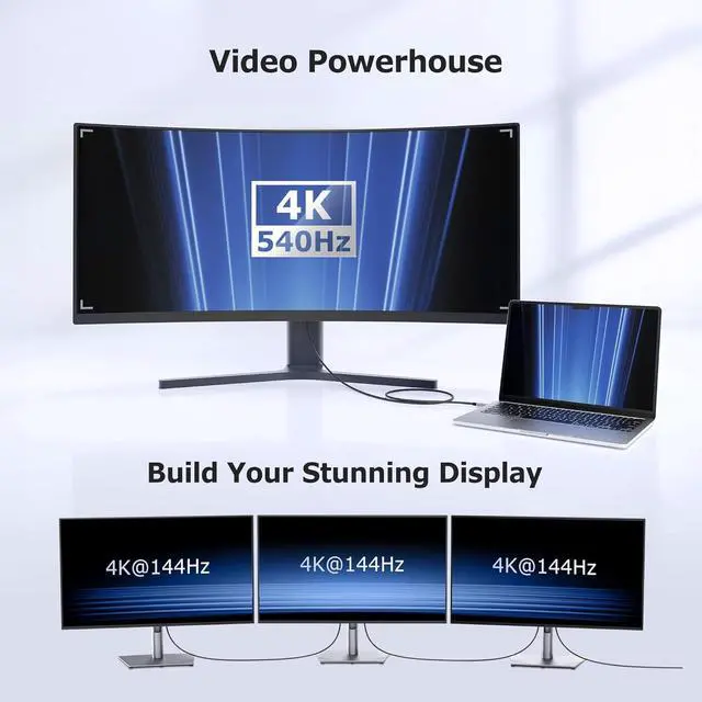 Unmatched Video Quality: Connect up to dual 6K or 8K displays or triple 4K @144Hz monitors for unparalleled visual clarity. This Thunderbolt 5 cable braided is ideal for professionals needing precise color accuracy and high-resolution displays for design, editing, and content creation.