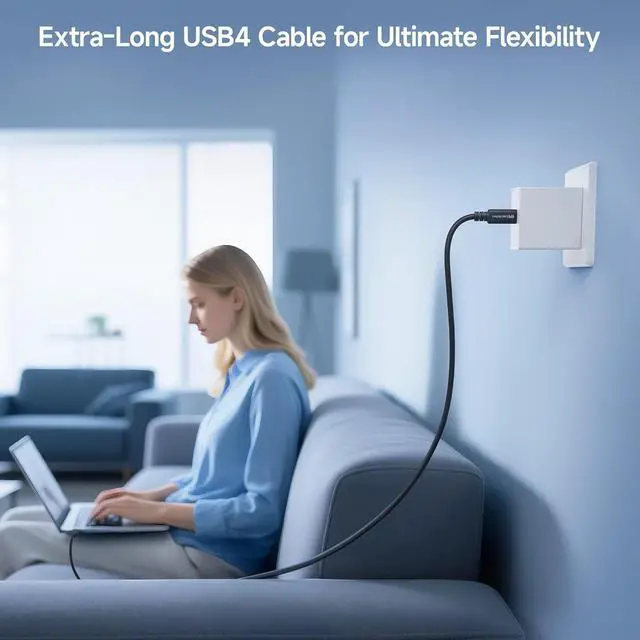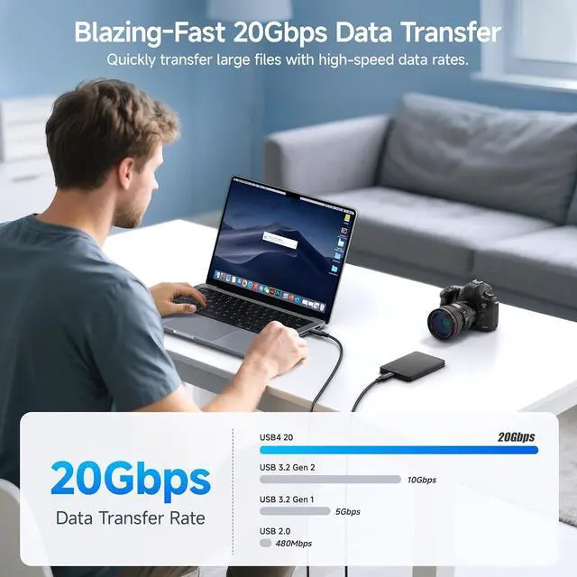 20Gbps Data Transfer Speed: Long USB C cable supports the next-gen USB4 standard with unmatched data transfer speed; USB4 USBC cable supports up to 20Gbps bandwidth for USB4 and USB-C devices