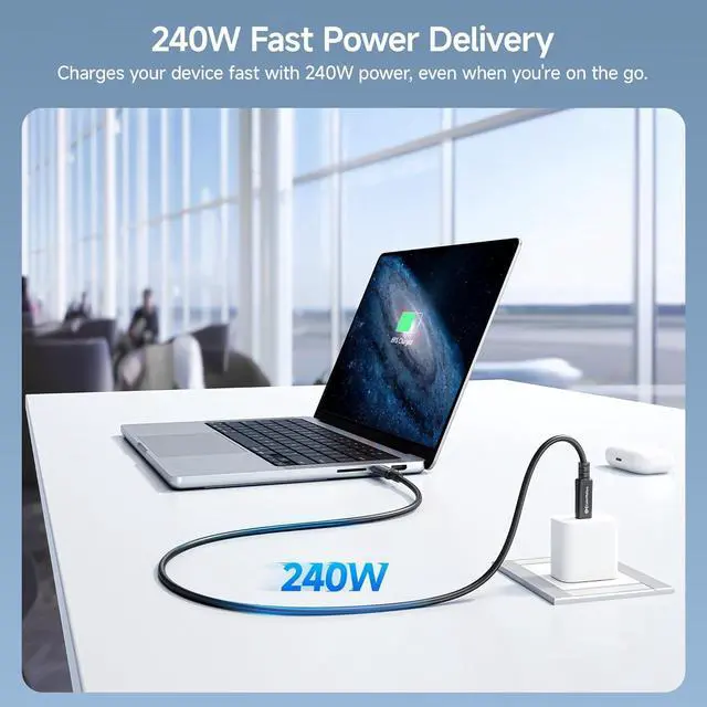 240W Power Delivery: USB 4 to USB 4 cable supports USB-C Power Delivery for up to 240W host charging; The USB C to USB C cable is also backward compatible with lower wattage USB-C devices such as Apple 140w USB-C power adapter or other brand 140w USB-C power adapter, iPad Pro, iPad Air; 140W USB C cable also supports fast charging on compatible devices