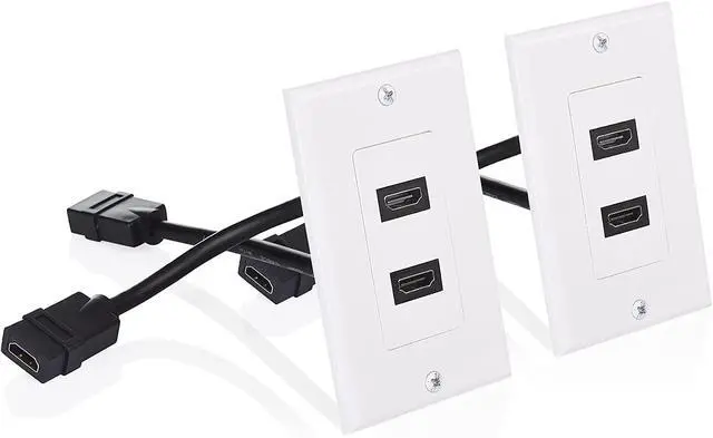 Cost-effective 2-pack HDMI plate provides two HDMI home theater wall plates to connect HDMI cables behind the wall instead of running them across the floor; Install close to your monitor or projector for a professional-looking installation in the home office, conference room or classroom