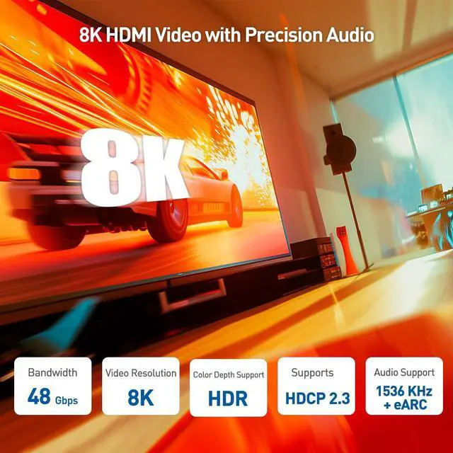 8K Video Resolution Support: Enjoy stunning 8K resolution with our HDMI 2.1 pigtail adapter. It's also compatible with 3D, 4K, and supports advanced HDMI features like Audio Return Channel and surround sound audio.