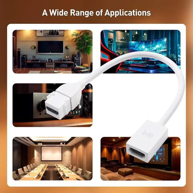 Upgraded HDMI 2.1 Keystone Pigtail: This HDMI keystone coupler supports the latest HDMI 2.1 standards, perfect for setting up a home theater with wall-mounted UHD TVs. It connects easily to devices like Blu-ray players and projectors, offering enhanced high-resolution capabilities.