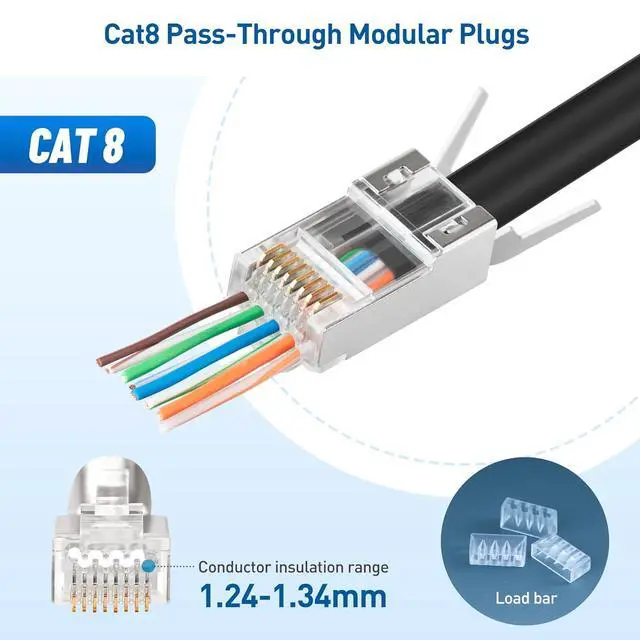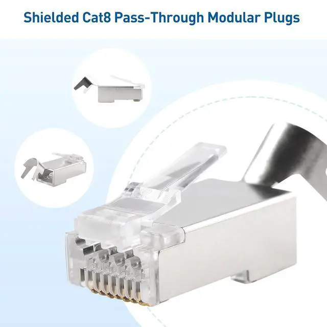 Effortless Installation: Installing these Cat8 shielded RJ45 connector pieces is straightforward. Just feed the Cat8 ethernet cable through the built-in openings on these cat 8 pass through rj45 connectors and crimp to achieve the perfect Cat8 cable connection.