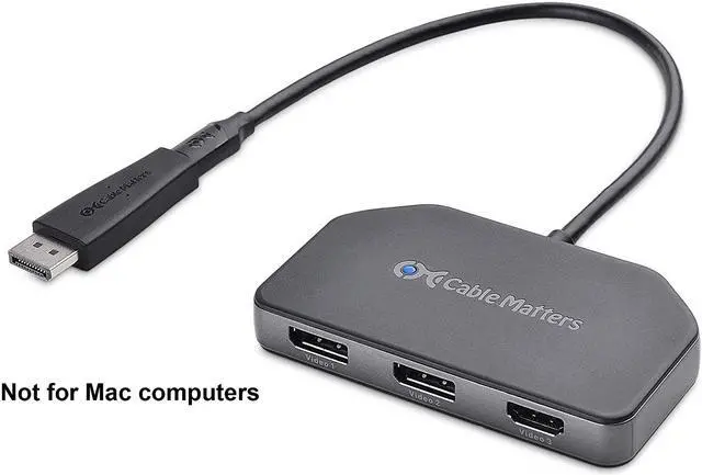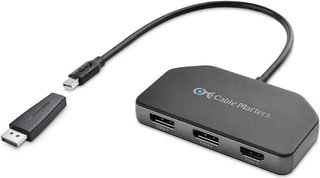 Mini DisplayPort 1.4 hub contains a built-in magnet allowing it to be conveniently mounted to any metal computer case. Flexible 12 inch cable tail on the MST hub avoids strain on the computers Mini DisplayPort.
