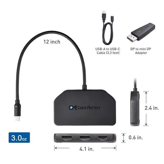 Versatile Mini DisplayPort splitter comes with a DisplayPort to Mini DisplayPort adapter and features two DisplayPort and one HDMI port for up to 3 monitor setup. Mini Display Hub offers increased bandwidth for more pixels and more colors. Supports HDR (High Dynamic Range), a feature not available on DisplayPort 1.2 (requires HDR support from graphics card and display).