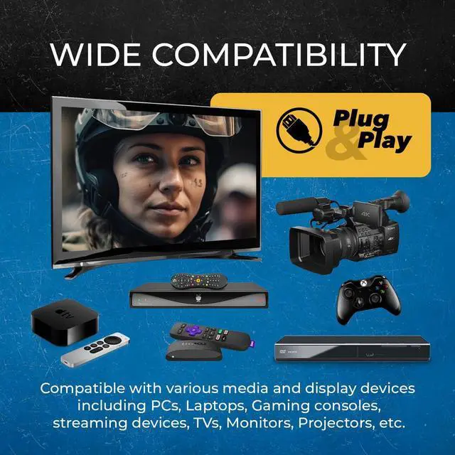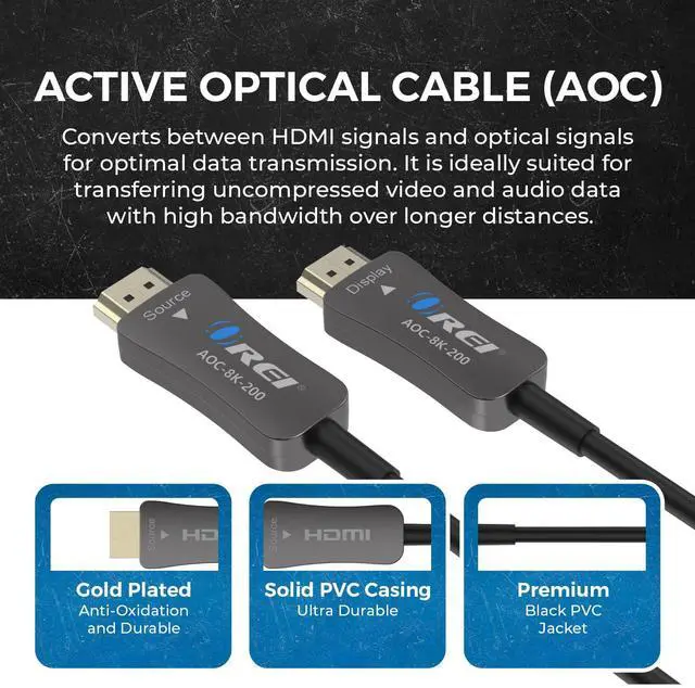 Optical Fiber Performance: Active optical fiber technology maintains full HDMI 2.1 performance across long distances with no compression, signal loss, or latency.