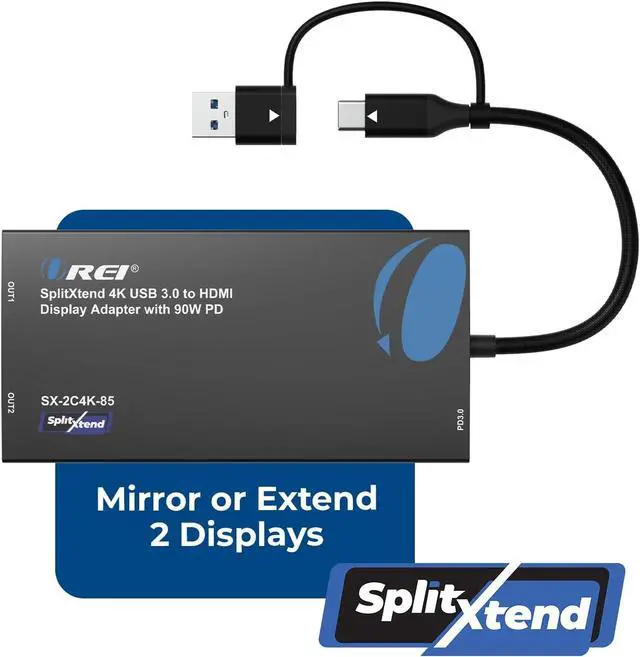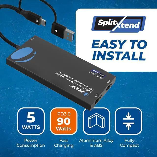 2 IN 1 CABLE: Features a 2-in-1 cable, the dual monitor adapter can be easily connected to USB-C, USB-A, or thunderbolt 3/4, USB 4 devices and then mirror or extend your screen content to greatly improve your work efficiency. PD3.0 90W Fast charging to charge your laptop while using our SplitXtend Adapter.