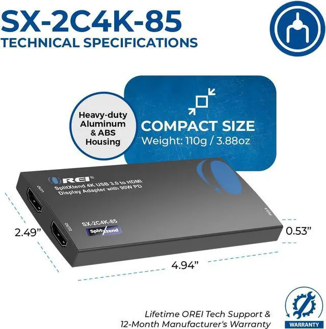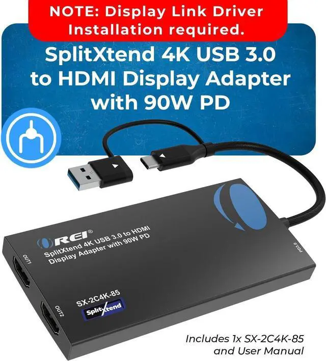 FULL 1 Year Full Warranty with Lifetime OREI Support. Includes: SplitExtend Converter, Manual. NOTE: DRIVER DOWNLOAD & INSTALLATION IS REQUIRED.