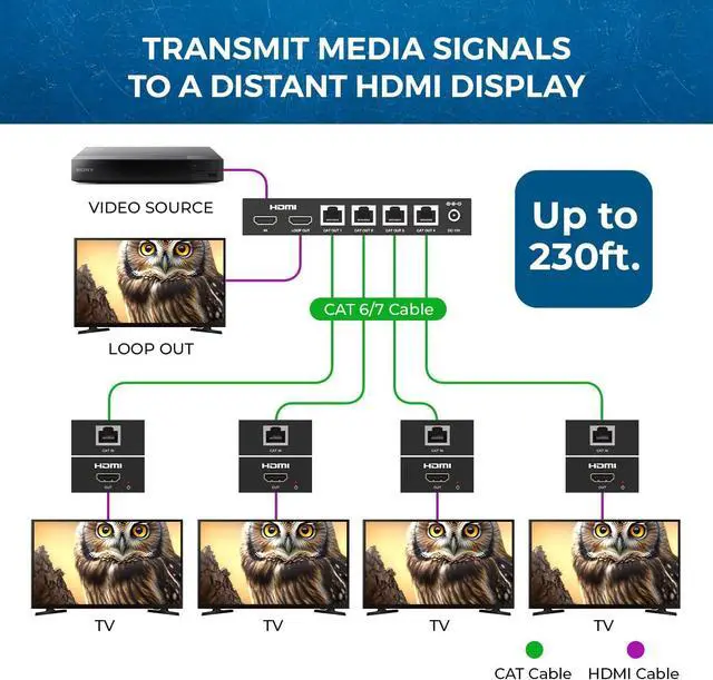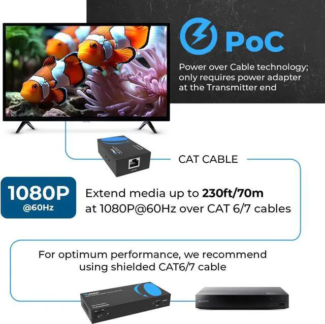 Plug & Play Setup without any Software Installation. Compatible with CAT6/6a/7 Network Cables. The highest Resolution Supported is 192×18@6Hz, 2K@6Hz Ideal Solution for HDMI Exhibition, Video Conference, Meeting rooms and Bars, etc