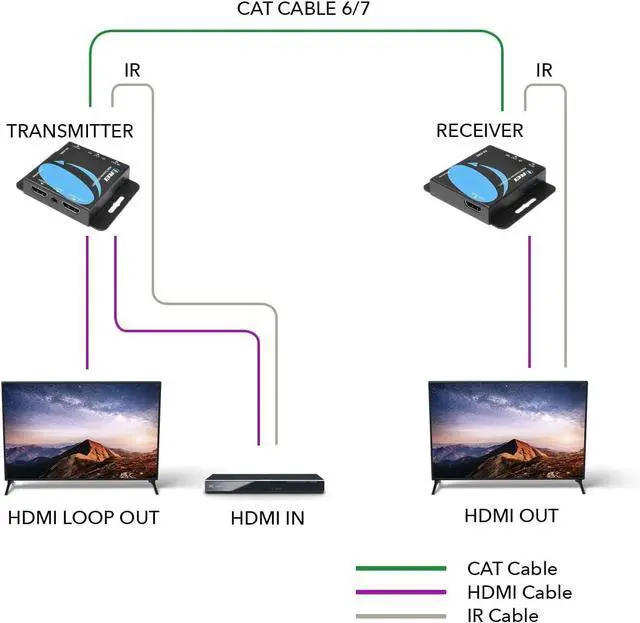 Local Loop Out - Lets you connect one display at the transmitter end and you will also get one display at the receiver end. Apply M-Jpeg technique to process image compressing, and with little image quality loss. We recommend high quality shielded CAT6/7 cable for maximum picture quality. Can be used for any purpose at home, office, gyms, bars, restaurants, digital signage, churches, classrooms, meeting rooms, meeting room projectors.