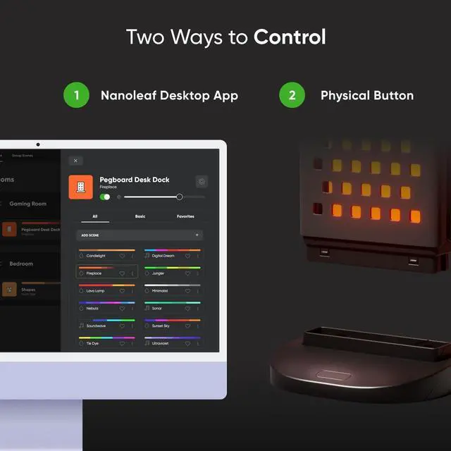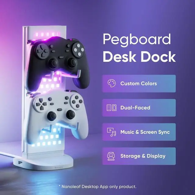 [Plug & Play with Nanoleaf Desktop App] Pair with the Nanoleaf Desktop App instantly just by plugging your Pegboard Desk Dock into your computer to access the full suite of Nanoleaf features.