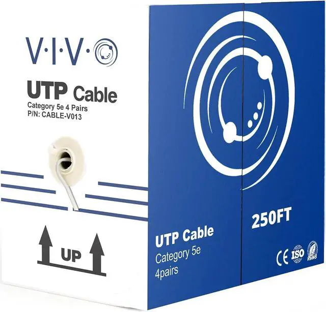 Cable Type: Cat5e bulk ethernet cable, 250ft roll, connector-free