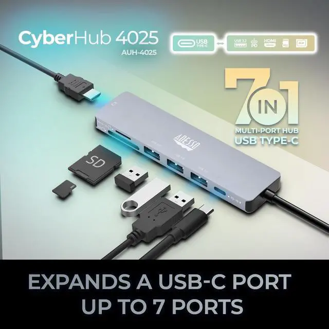 7-IN-1 USB TYPE-C MULTI-PORT DOCKING STATION: Experience outstanding connectivity with our USB Type-C multi-port docking station. Equipped with Type-C port, HDMI port, 3 x USB 3.2 high-speed ports, and convenient SD/TF card reader slots, this hub allows you to enjoy the convenience of multiple ports in one compact device.