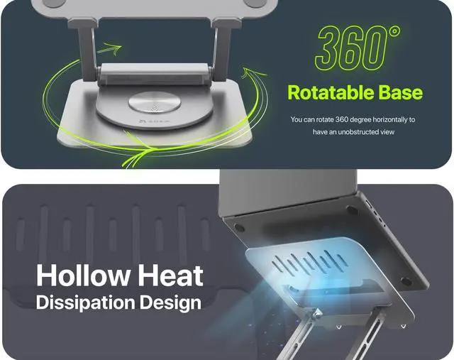 Enhanced Stability: Extended silicone rubber pads on the surface and bottom add friction for stability and safety of both the laptop and the stand.