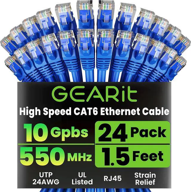GearIt 24-Pack, Cat 6 Ethernet Cable Cat6 Snagless Patch 1.5 Feet - Snagless RJ45 Computer LAN Network Cord, Blue - Compatible with 24 48 Port Switch POE Rackmount 24port Gigabit