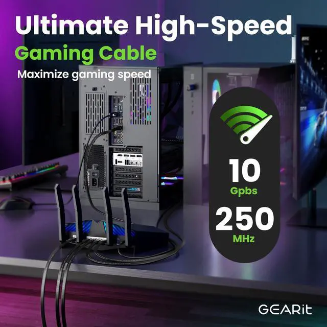 The Ultimate High-Speed Gaming Cord - Elevate your gaming experience with GearIT's Category Cat 6 Ethernet cable, delivering impressive bandwidths of up to 250MHz and lightning-fast data transmission speeds of 10Gbps. Enjoy a stable network connection for seamless online gaming, Internet browsing, HD video streaming, uploading, downloading, and more