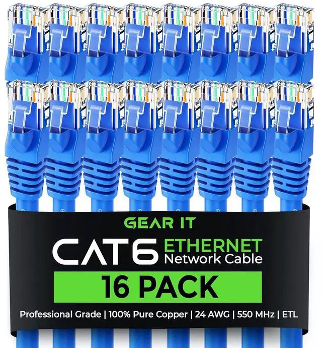 GearIT Cat 6 Ethernet Cable (16-Pack 7 Feet) Cat6 Network Patch, 10Gbps, RJ45, Snagless Cord, Gold-Plated Connectors, Internet for PC, TV, Tablet, Router, Printer, Servers, IT Data Center - Blue