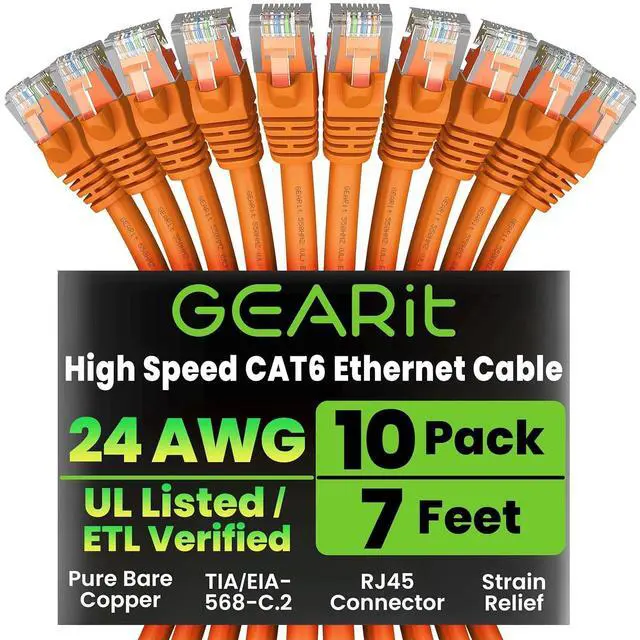 GearIT Cat 6 Ethernet Cable 7 ft (10-Pack) - Cat6 Patch Cable, Cat 6 Patch Cable, Cat6 Cable, Cat 6 Cable, Cat6 Ethernet Cable, Network Cable, Internet Cable - Orange 7 Feet